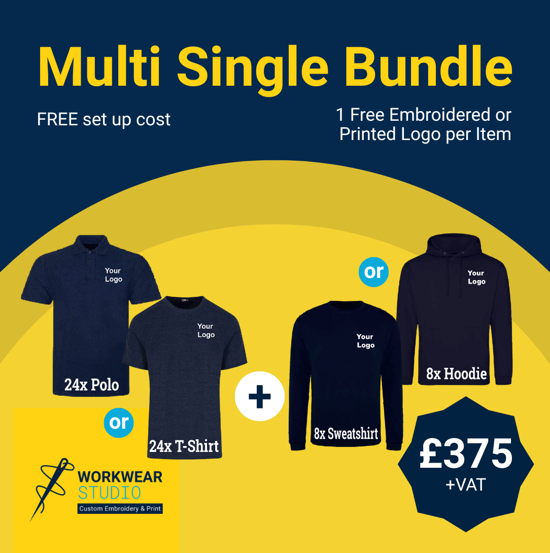 1x Free Embroidered or Printed logo per item